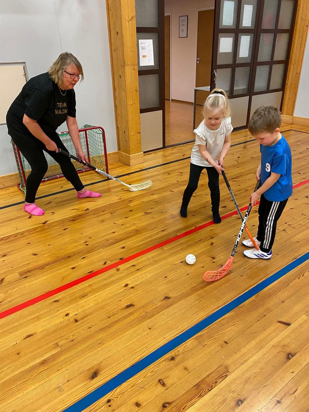 Lapijoen koulun liikuntasalissa haastettiin perheet pelaamaan sählyä. Lapijoen kylät- yhdistys järjesti Lapsi-aikuinen sählypelit.